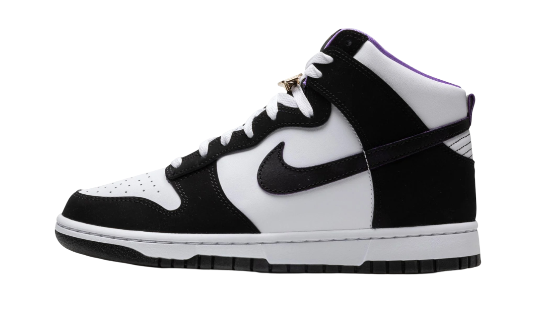 La Nike Dunk High “World Champ” è una versione bicolore, bianca e nera, della scarpa da basket retrò ispirata nientemeno che al wrestling professionistico. La “World Champ” è stata progettata con l’amata colorazione “Panda” o “White/Black” della Dunk, ma con un tocco in più. Presenta un laccio dorato a forma di cintura del campionato di wrestling. Altri accenti dorati sono presenti sui loghi “Nike” e Swoosh sulla linguetta in nylon nero. Il rivestimento interno viola aggiunge un tocco di colore. La base della scarpa è in pelle bianca, mentre le sovrapposizioni e lo Swoosh sono in pelle nera. Data di uscita: 17 settembre 2022