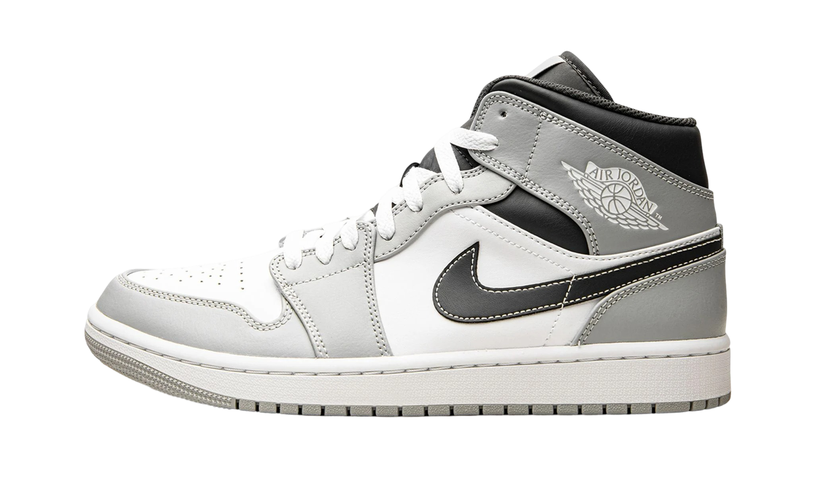La Air Jordan 1 Mid “Light Smoke Grey 2.0” è una colorazione versatile e neutra della scarpa lifestyle che può essere indossata con tutto. La “Light Smoke Grey 2.0” presenta un design in pelle bianca con sovrapposizioni in pelle Light Smoke Grey su punta, avampiede e occhielli e pannelli in pelle color antracite su colletto e tallone. Lo Swoosh in pelle nera compare ai lati e il logo “Wings” bianco sul colletto. Il marchio Jumpman grigio si trova sulla linguetta.