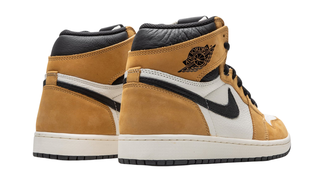 La Air Jordan 1 “Rookie of the Year” è una colorazione unica che commemora il riconoscimento di Rookie of the Year di Michael Jordan nel 1985. Quando Jordan vinse il premio dopo il suo debutto nella stagione NBA 1984-85, la stella dei Chicago Bulls accettò il trofeo indossando una giacca color tan, che ispira il colore primario di questa scarpa. La struttura presenta una base in pelle pieno fiore bianca con sovrapposizioni in nubuck marrone e accenti neri. Questa colorazione della Jordan 1 presenta anche dettagli nascosti sotto i pannelli staccati della caviglia, tra cui le statistiche della stagione da rookie di MJ e una citazione del suo discorso di accettazione. La Air Jordan 1 “Rookie of the Year” è stata rilasciata nel novembre 2018.