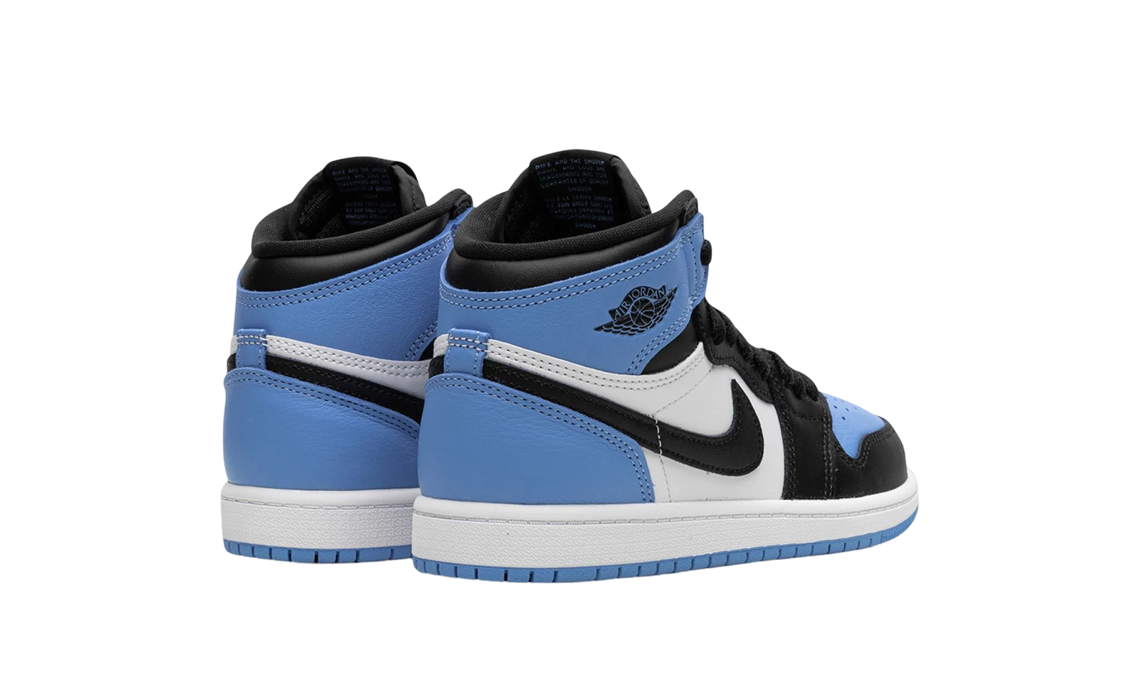 La Air Jordan 1 Retro High OG PS “UNC Toe” è la versione prescolare della scarpa da basket retrò in una colorazione ispirata ai modelli originali “UNC” e “Black Toe”. Nel modello “UNC Toe”, la Jordan 1 presenta una punta traforata in pelle University Blue, contrastata da sovrapposizioni in pelle nera sulla punta, sull’avampiede e sugli occhielli. Il design presenta anche pelle bianca sul pannello centrale e pelle University Blue sul colletto e sul tallone. Lo Swoosh e il logo “Wings” in pelle nera si trovano rispettivamente sul pannello centrale e sul colletto. L’accento University Blue è un riferimento all’alma mater di Michael Jordan, l’Università del North Carolina, e alla colorazione originale “UNC” della Jordan 1. Data di uscita: 22 luglio 2023