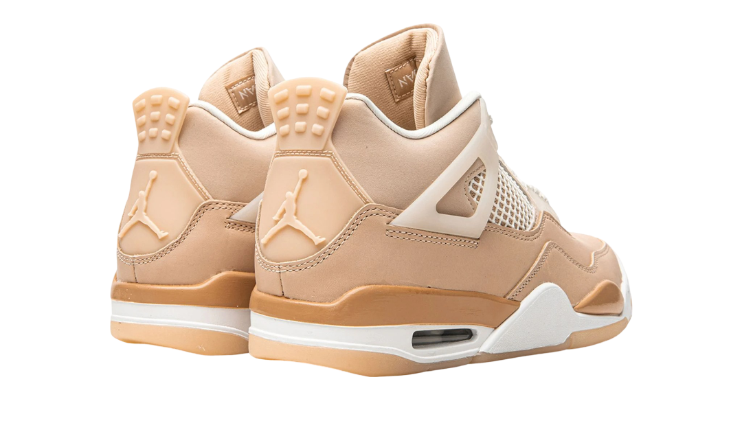 La Air Jordan 4 “Shimmer” da donna è una colorazione esclusiva della quarta signature shoe di Michael Jordan che celebra le donne che creano spazi sicuri e inclusivi per le altre donne all’interno delle loro comunità. Rilasciata da Jordan Brand nel settembre 2021, la “Shimmer” è una colorazione prevalentemente monocromatica rosa/arancio che ricorda la Hender Scheme x Air Jordan 4, una delle Jordan 4 più desiderate di tutti i tempi. In questo caso, l’intera scarpa è vestita di una tonalità Shimmer, ad eccezione dei lacci, delle “ali” semi-trasparenti e della rete sulla linguetta e sul pannello centrale. Inoltre, sulla linguetta si trova un Jumpman metallizzato argento, che rappresenta uno specchio presente nelle palette per il trucco. Un Jumpman tonale si trova sul tallone. Un parafango dipinto di arancione si trova sopra un’intersuola bianca con un’ammortizzazione Air visibile sul tallone. Data di uscita: 3 settembre 2021