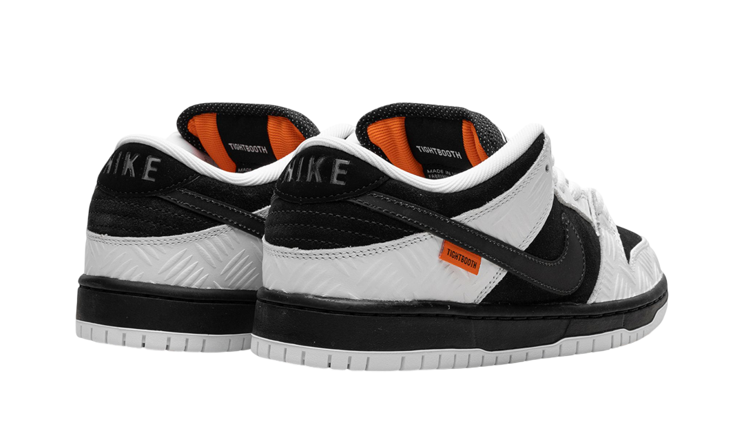 La TIGHTBOOTH x Nike SB Dunk Low è una collaborazione del marchio giapponese di skateboarding su una scarpa da skate retrò. Ispirata all’identità del marchio TIGHTBOOTH, questa versione della SB Dunk Low presenta una base in pelle scamosciata nera contrastata da sovrapposizioni in pelle bianca con un motivo strutturato che riproduce l’aspetto delle piastre metalliche del battistrada. Il logo Swoosh in pelle nera bottalata è presente su entrambi i lati della scarpa, mentre un’etichetta arancione “TIGHTBOOTH” è presente sul lato laterale del pannello centrale. Un ulteriore marchio “TIGHTBOOTH” si trova sulla linguetta e sulla linguetta del laccio. L’intersuola nera e la suola bianca completano il look. Data di uscita: 11 novembre 2023